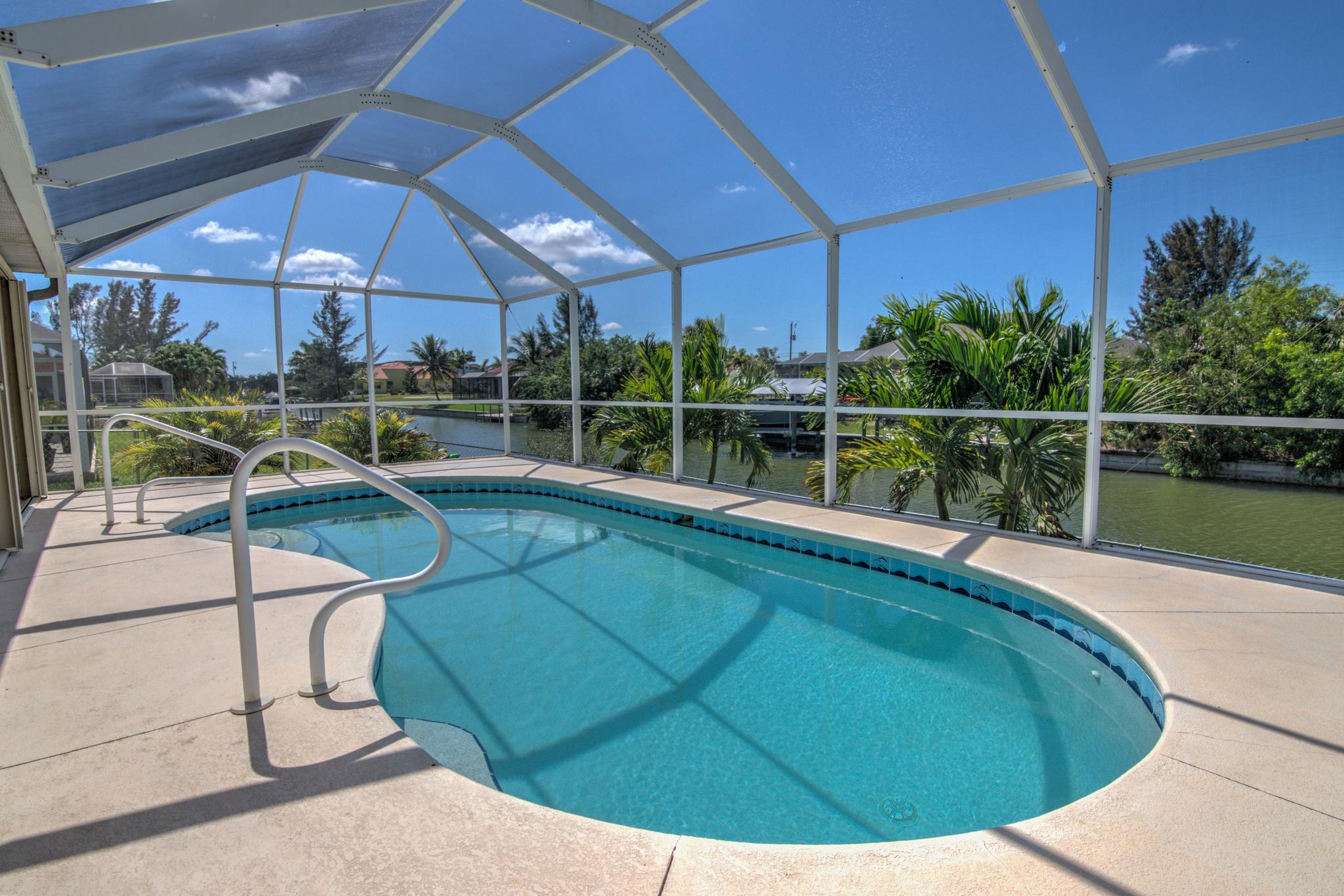 | If you enjoy boating, fishing, swimming, lounging or just relaxing in the Florida sunshine - this home is for you. Situated on a west facing gulf access lot, perfect for boating and observing the best views of our spectacular Florida sunsets. The large swimming pool overlooks the canal and is enclosed by a screened-in lanai for your added enjoyment. The interior of the home is nicely appointed with updated appliances, granite counters, vaulted ceilings, in home laundry room and storm protection on each window including the entire lanai area. Carpets in all four bedrooms and the front living area/den are all brand new and all utility assessments are PAID IN FULL. This home would make a perfect seasonal vacation home or year-round residence and is located close to shopping and entertainment with easy access to Fort Myers, the beaches and the surrounding areas. |