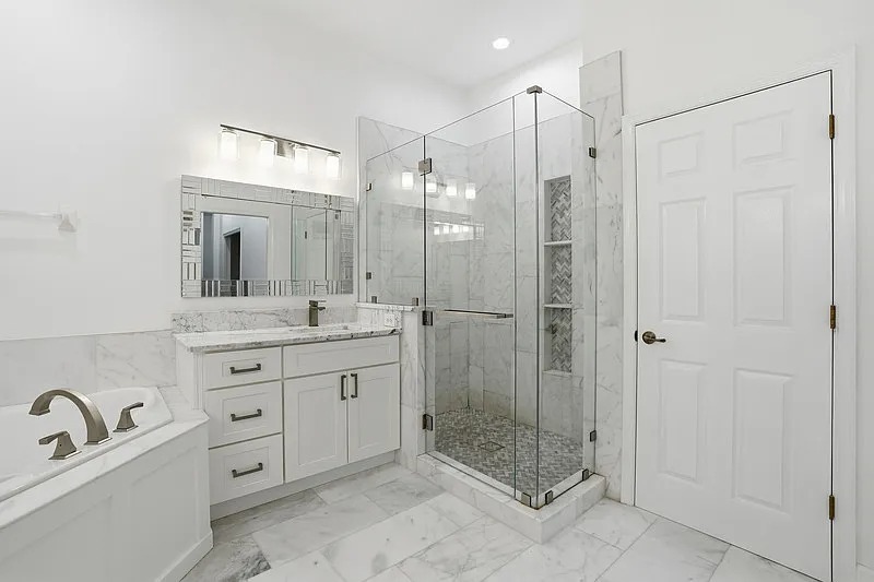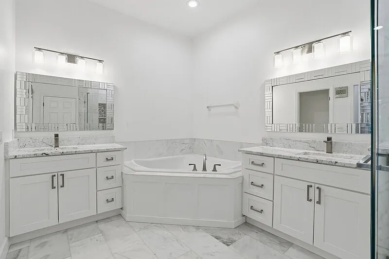 The master suite is a true retreat, boasting a spacious walk-in closet and an en-suite bathroom with dual sinks, a soaking tub, and a separate shower. The additional bedrooms offer flexibility for guests or a home office setup.